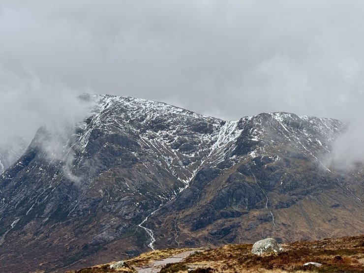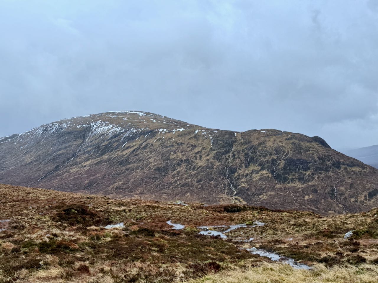 Stob Coire nan Lochain with the snow melt very evident from the amount of water flowing out of the coire.