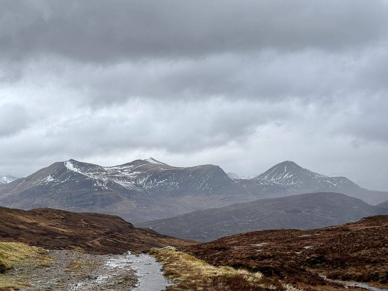 Looking North to the Mamores, from left to right, Na Gruagaichean, Binnein Mor, Sgor Eilde Beag and Sgurr Eilde Mor.
