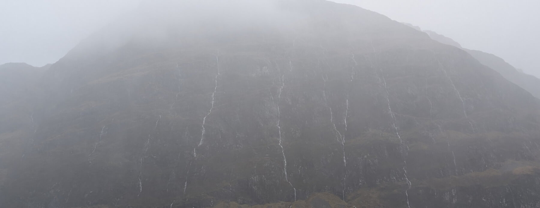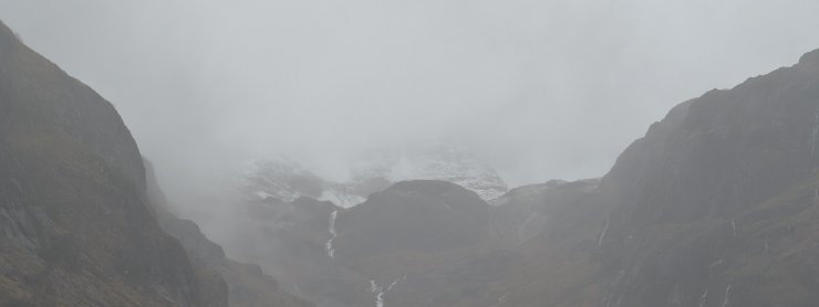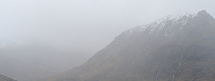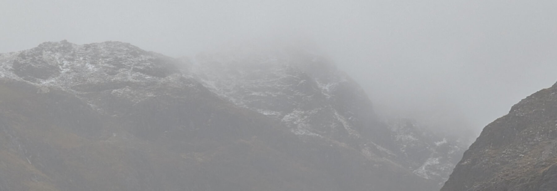 New snow fell overnight but this turned to heavy rain this morning as freezing levels rose above the summits. Colder conditions are expected to return with snow showers affecting slopes mainly above 800 metres. Possibility exists of more extensive snowfall later on Thursday and this may affect the extent of the avalanche hazard. Not the best day for photos, most remaining snow in the higher sheltered corries and gullies.