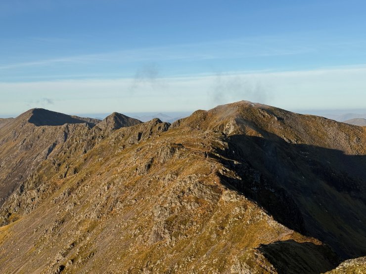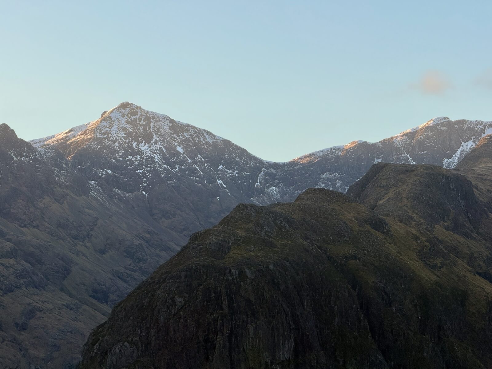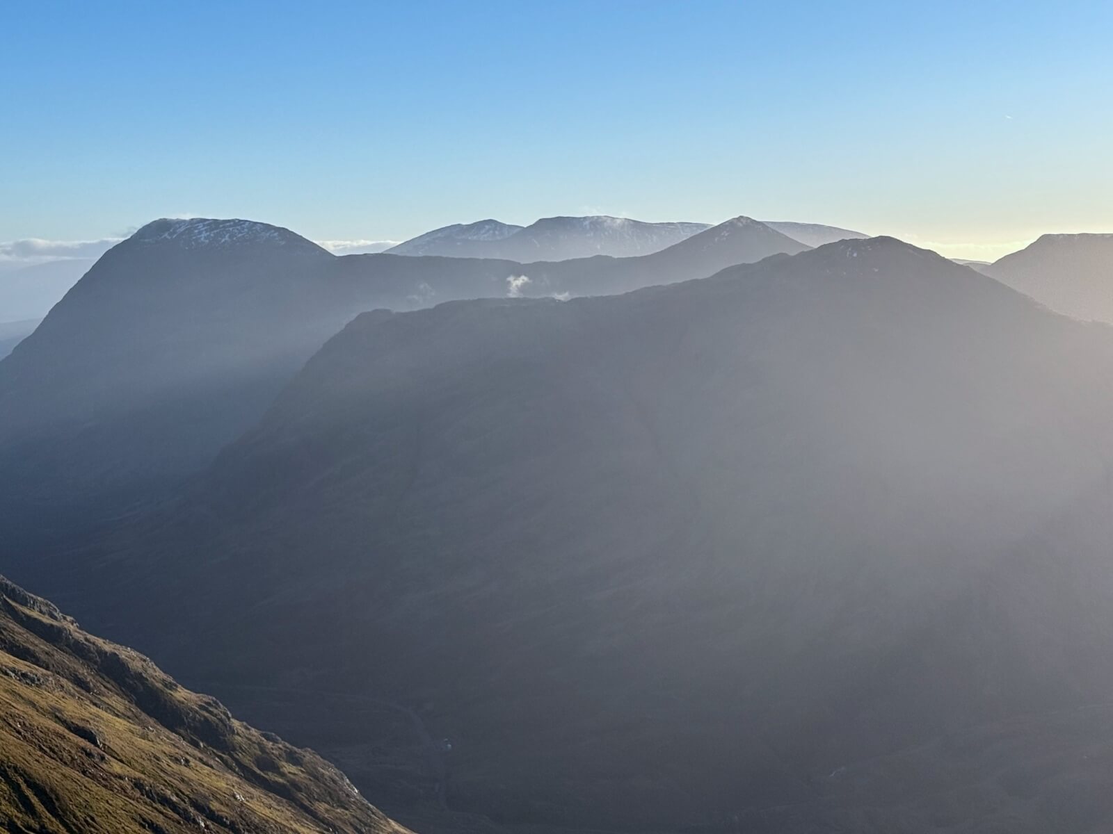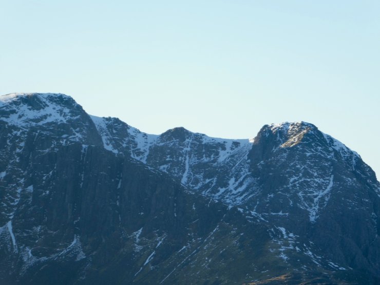 Looking East from near the summit of Am Bodach. From front to back, Buachaille Etive Beag, Buachaille Etive Mor, Creise then Meall a Bhuiridh (Glencoe ski centre) at the very back.