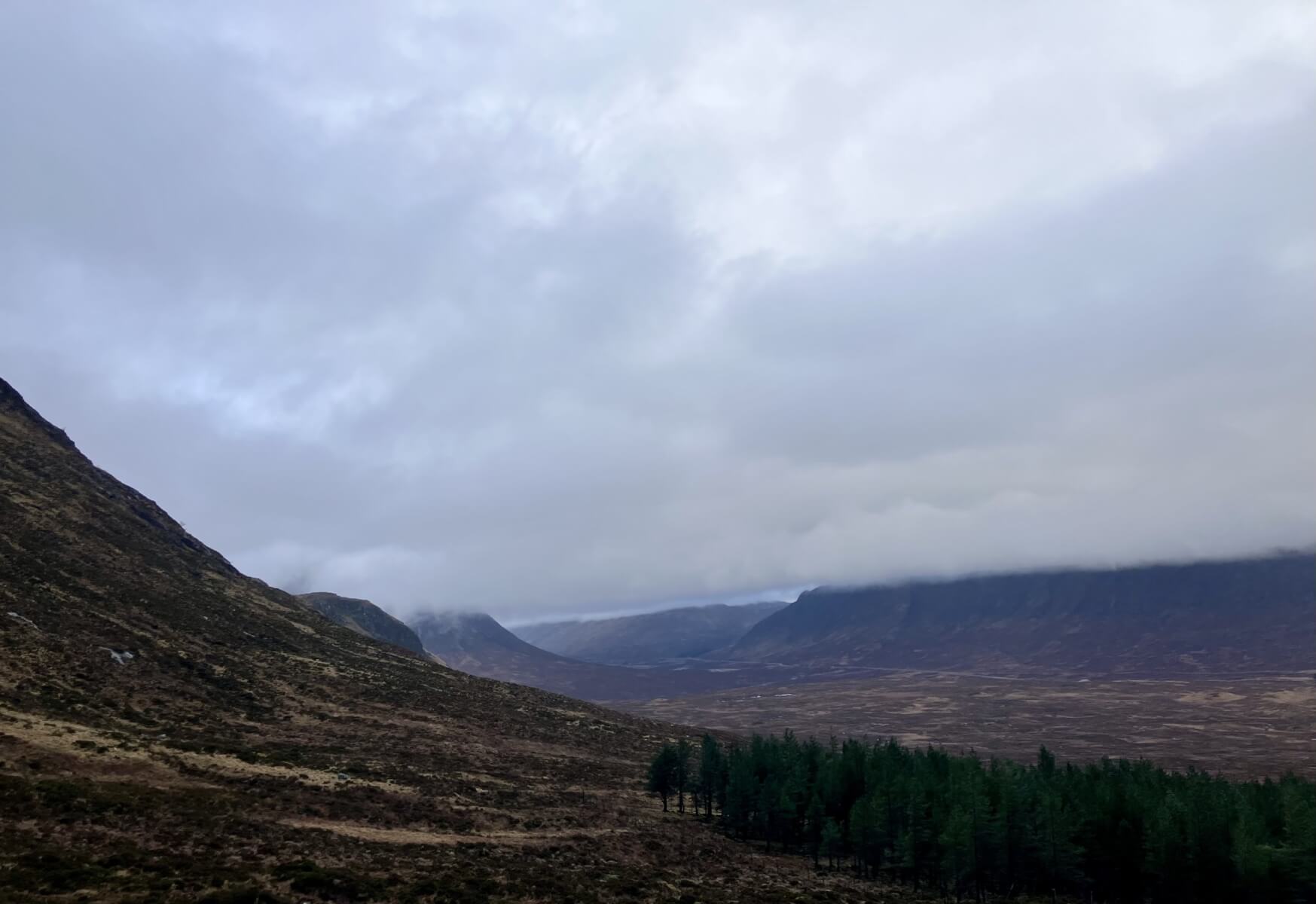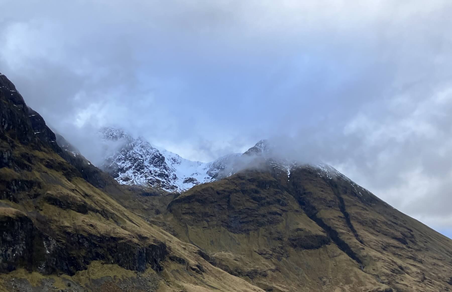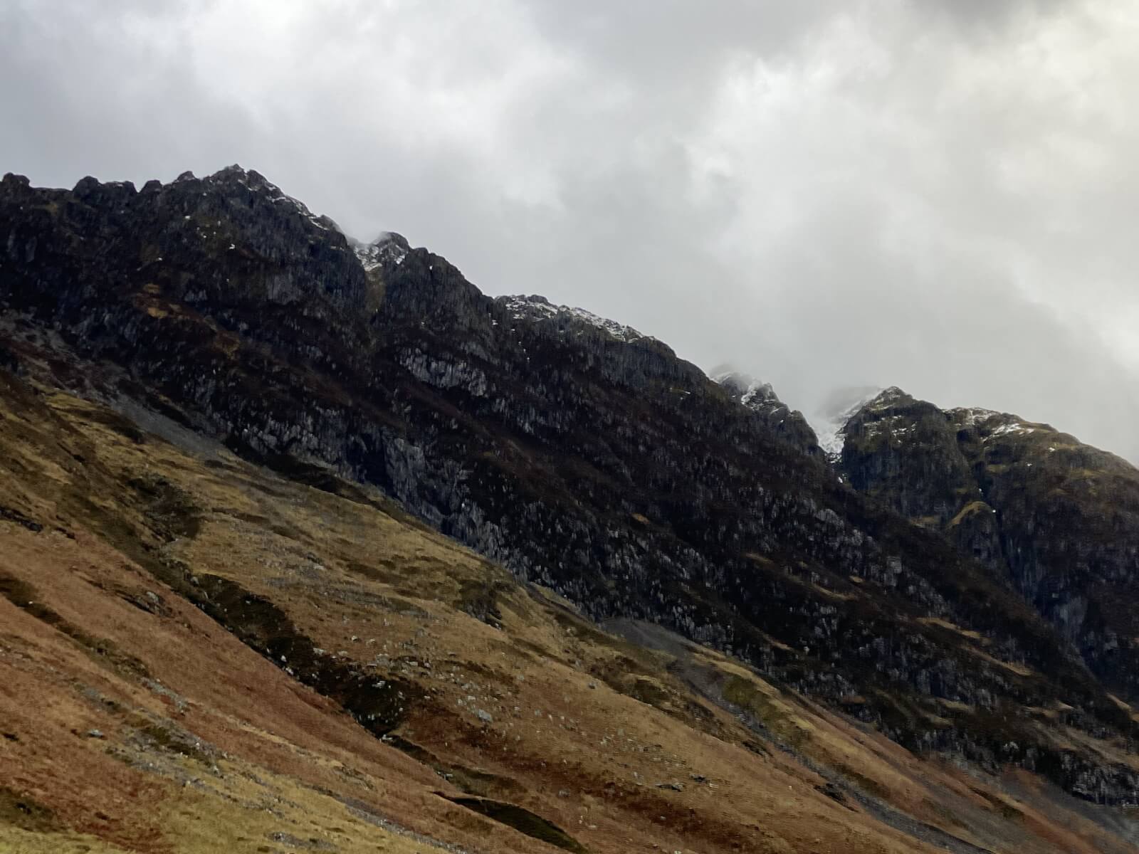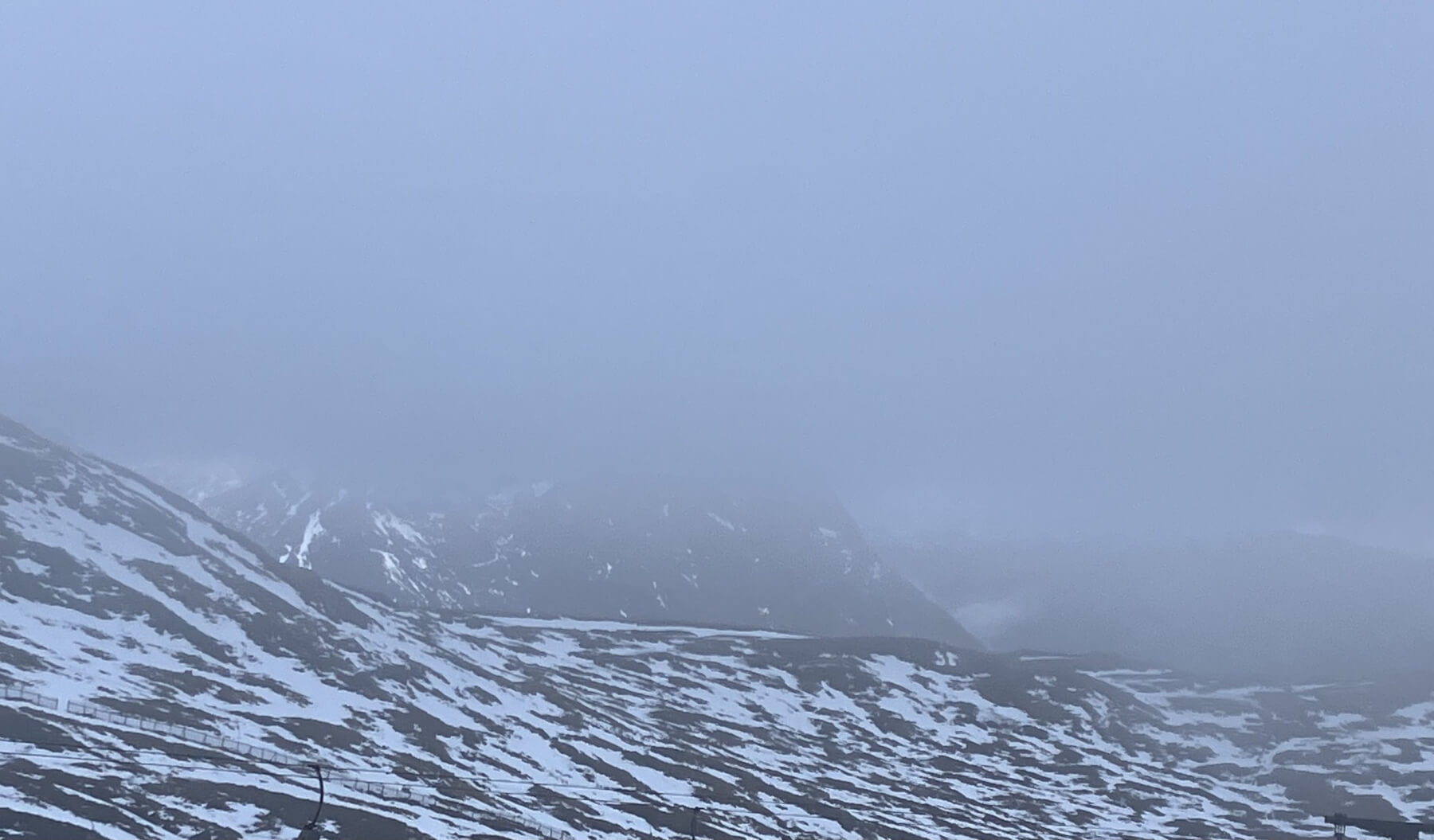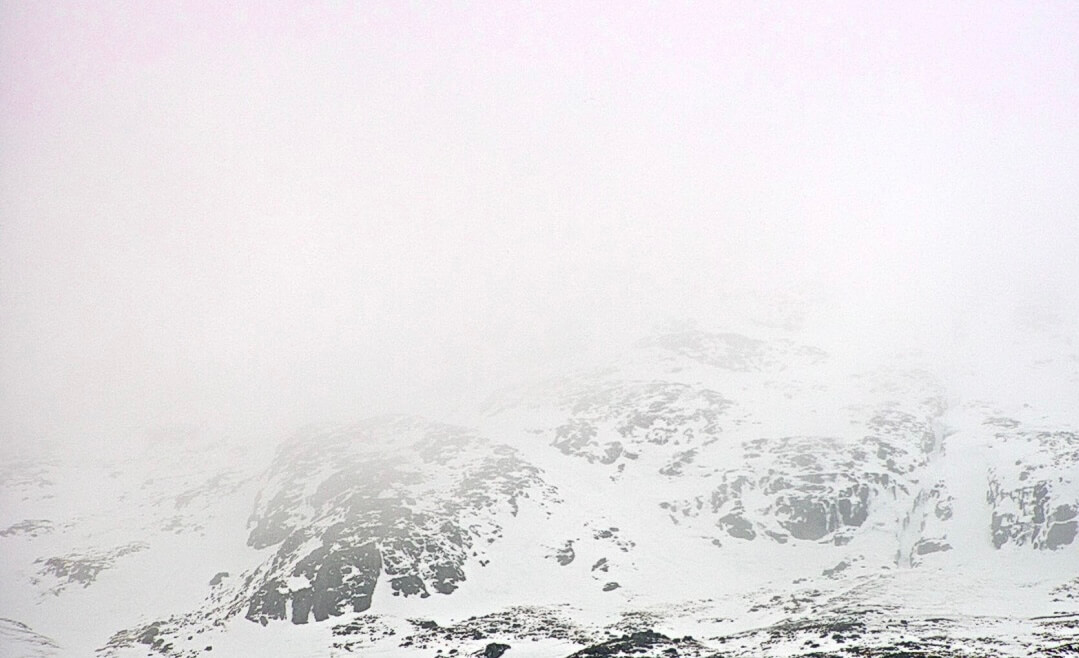 Overnight, the freezing level briefly rose above the summits follow by a fall in temperatures and some very light snow fell above 850 metres. Cloudy and misty with some further light snow fall this morning then a mainly dry day. Winds were light South-Easterly. A slow thaw is diminishing the snow cover at lower levels but some icy footpaths hillsides still persist.