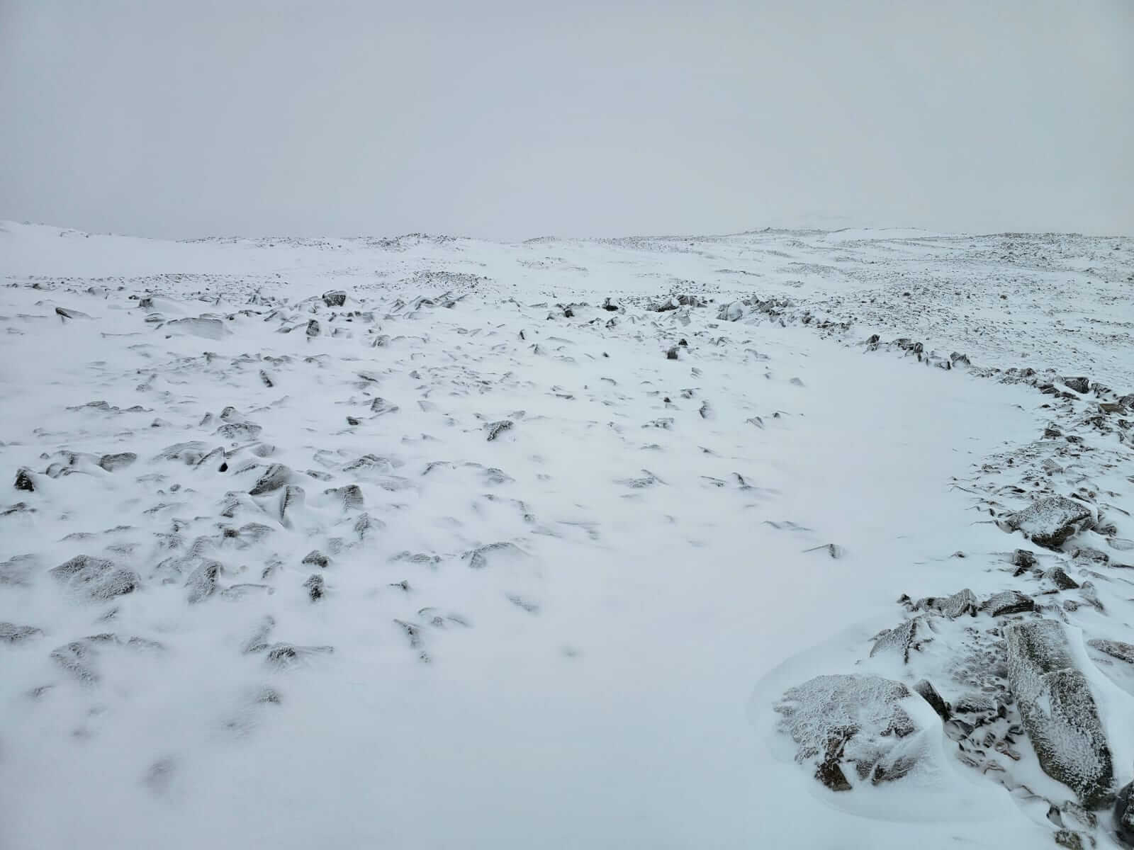 Today was initially dry following the overnight snow which had fallen at all elevations. During the morning there was more sustained rain and snow at higher elevations as the freezing level fluctuated, initially around 400 metres rising to around 800 metres. Not the worst but fairly blizzard conditions around the summit of Meall a Bhuiridh making conditions quite unpleasant. Summit temperatures around minus 2 Celsius in the morning.