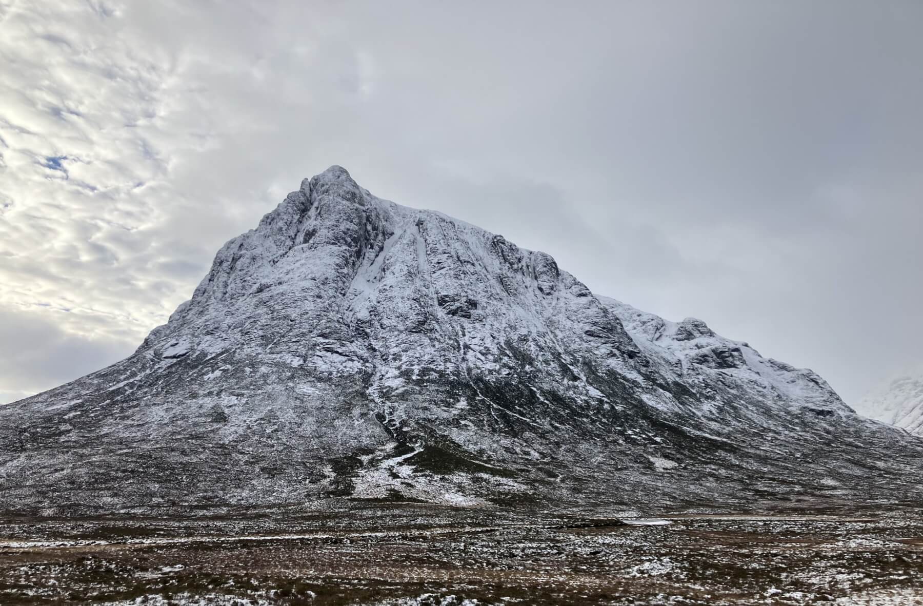 Stob Dearg – Buachaille Etive Mor around 9.30 this morning, see lower photos as it cleared after midday.