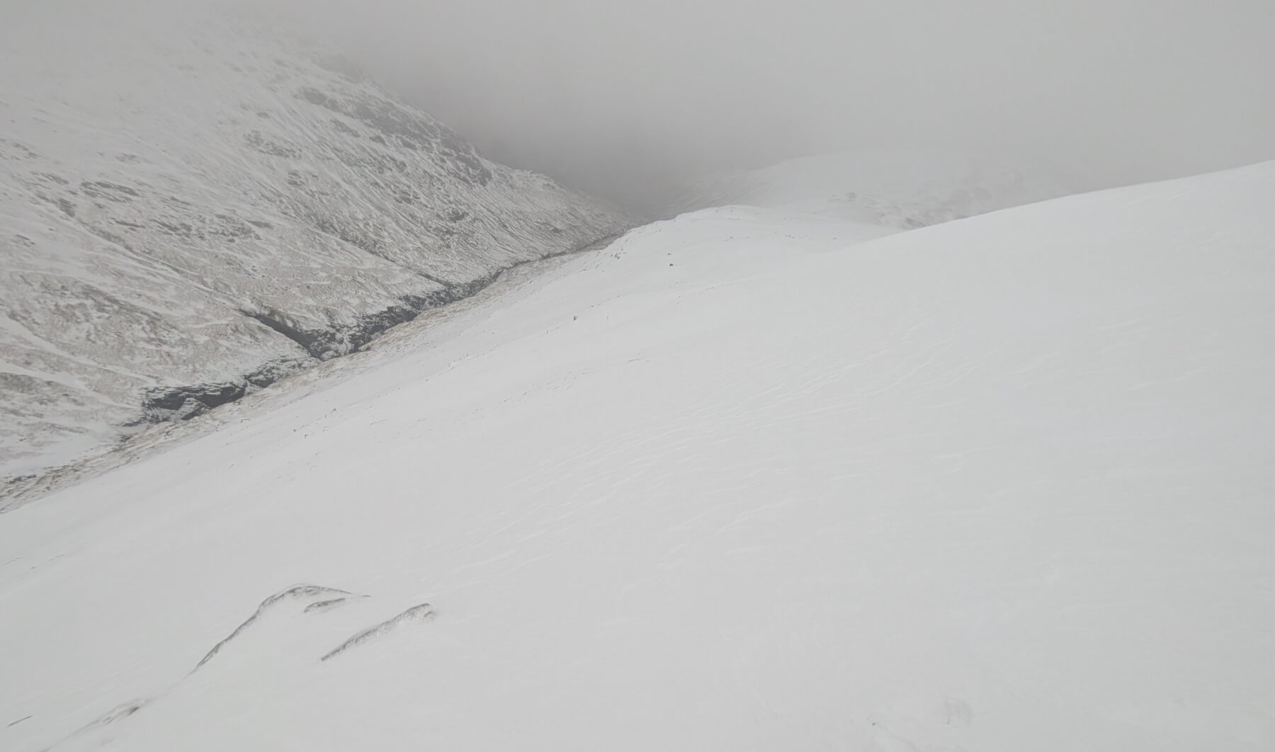 Many windward slopes have been scoured by the recent South-Easterly winds, stability in these areas is generally good with a firm and icy surface. Serious run out potential exists in the event of an uncontrolled slip or fall. Localised areas of windslab exist in wind sheltered summit gullies and steep corrie rims. See report for more details.