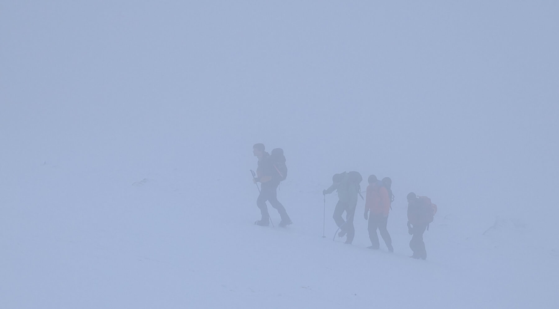 Calm conditions made a change from the recent strong South-Easterly winds that have affected the area. Visibility was poor but cleared a bit later. Many areas have been scoured by the strong winds giving firm and icy conditions on higher slopes.