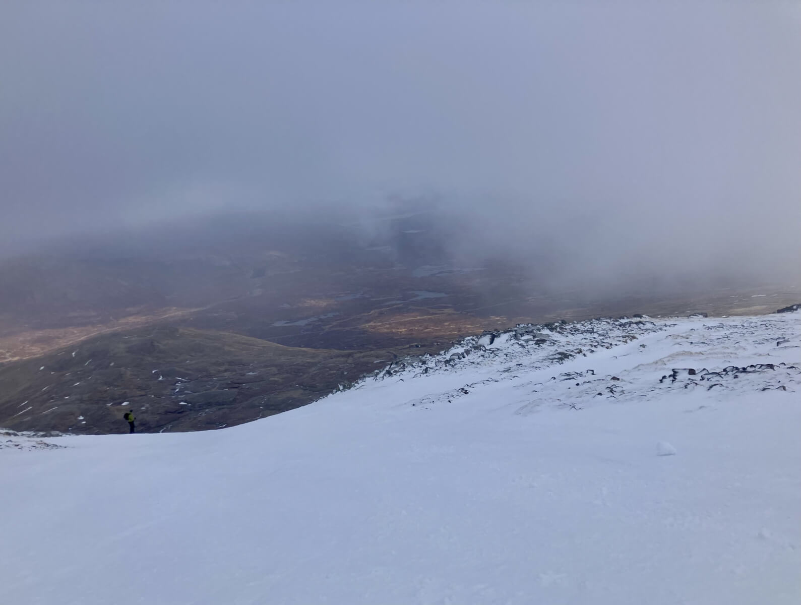 After a cold night it dawned bright and clear with all summits cloud free with a frost in lower glens. Then some clouds started to appear with a brief snow shower the snow fall was short lived but the clouds lingered over the higher summits with some clearing spells. Freezing at levels with moderate South-Westerly winds the freezing level slowly rising through the day to around 700 metres.