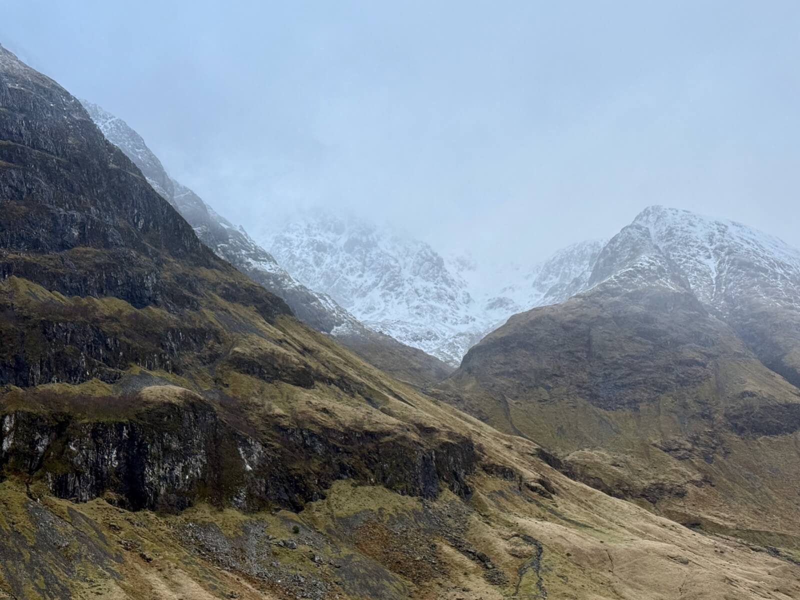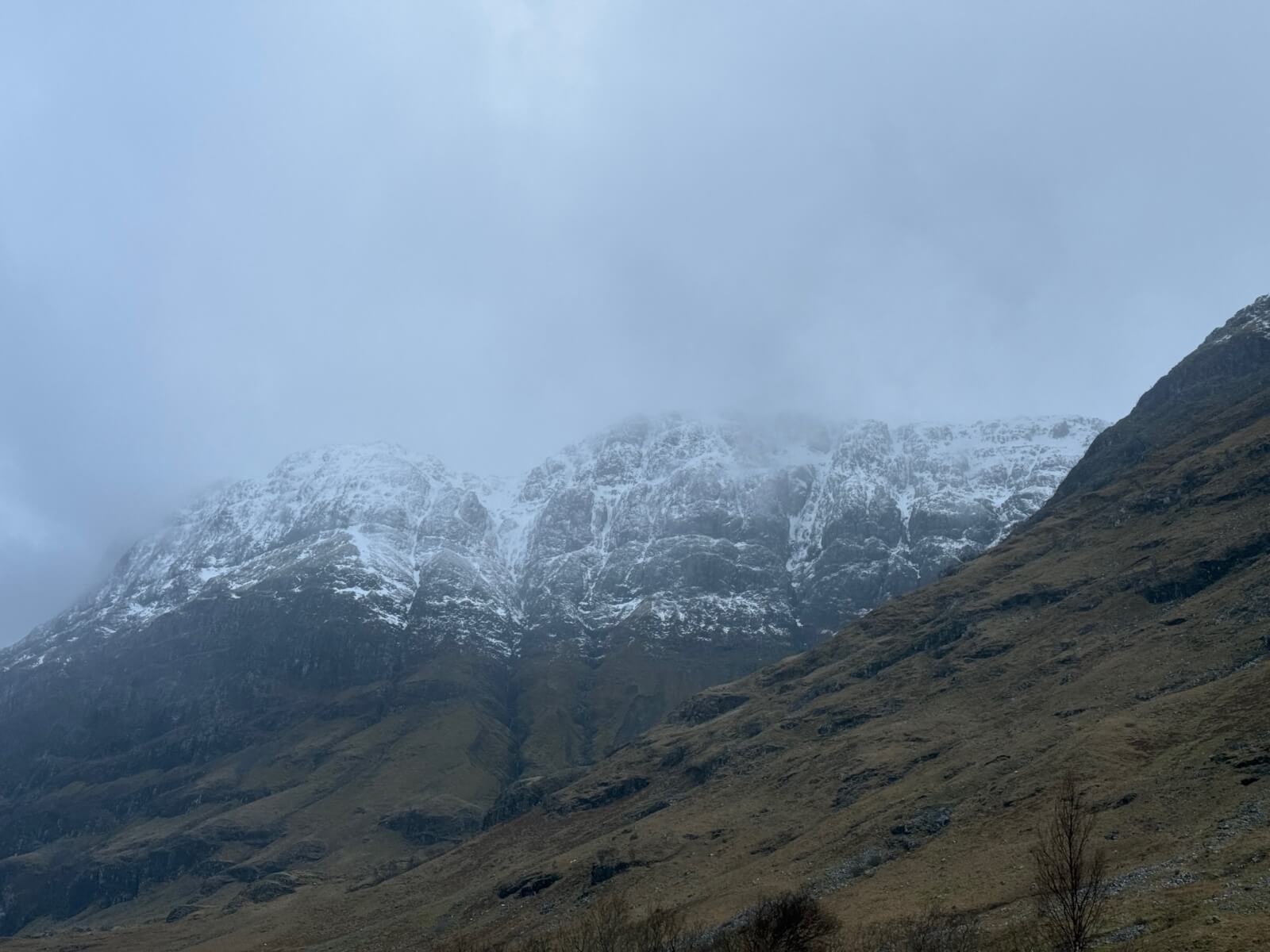 One of the few glimpses of the hills today, Stob coire nam Beith on the left An t-Sron on the right.