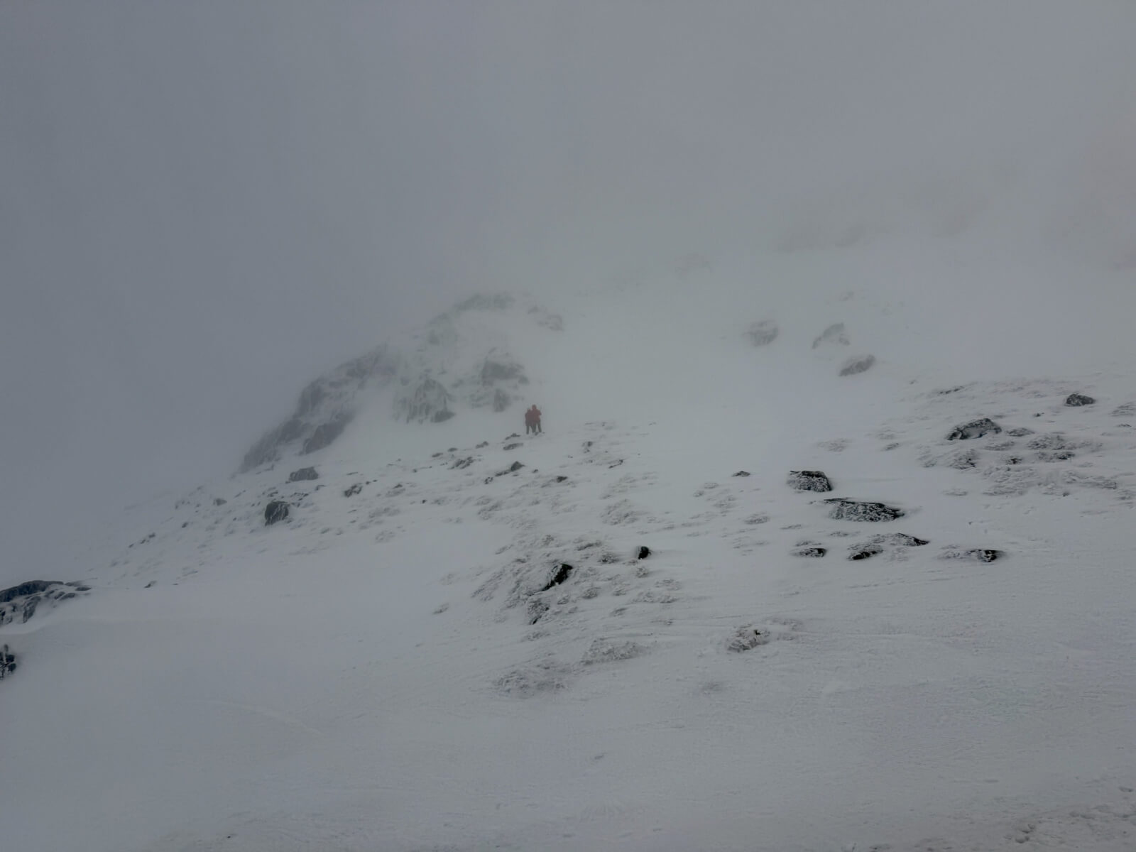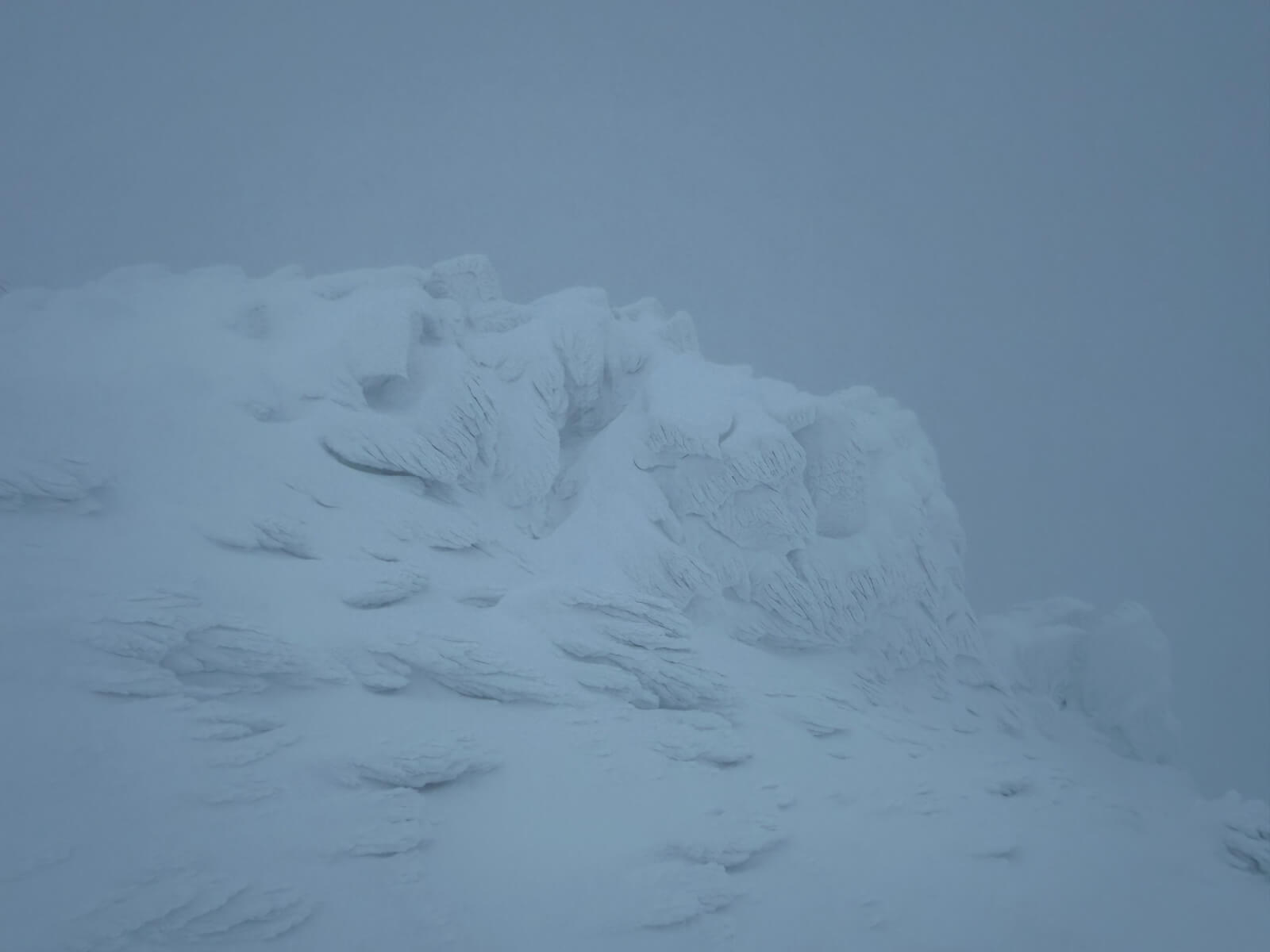 The South-Easterly weather pattern continues with strong winds and poor visibility. The snowpack continues to consolidate and is either firm and icy or has a breakable crust, the snow surface also has a thick layer of rime in many places as do most surfaces above around 500 metres.