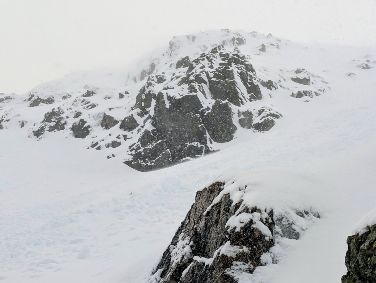 It was windy overnight and today with rain, sleet and quite deep drifting snow on higher ground mainly above 900 metres. Overnight avalanche event noted on an Easterly aspect. Much of the snow at lower levels has now gone.