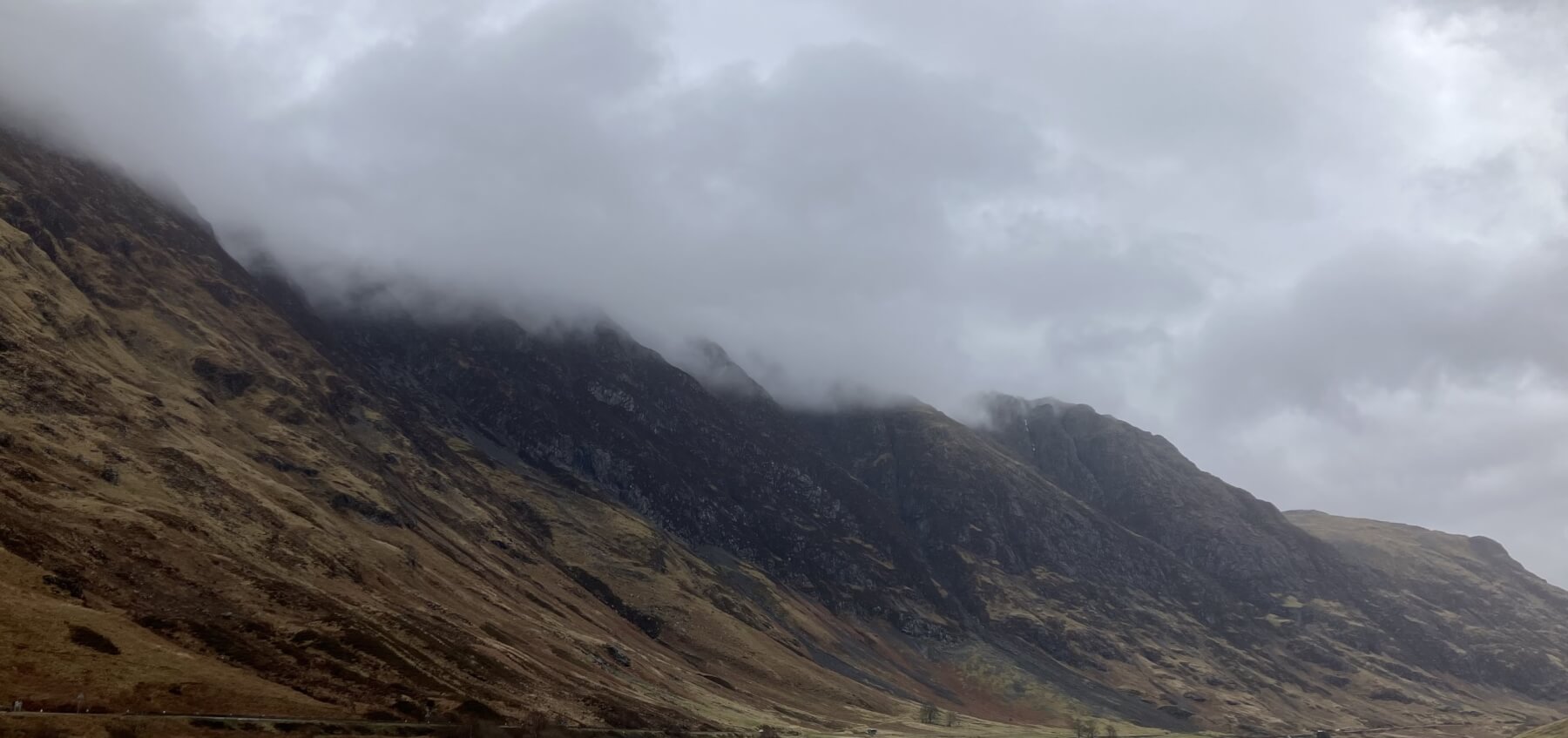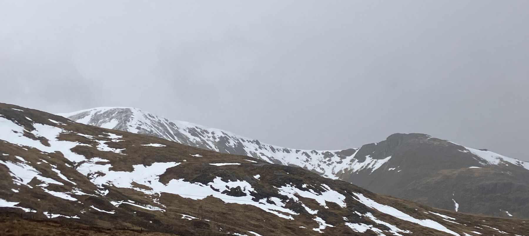 Northerly aspects of Meall a’ Bhuiridh – note the creeping glide cracks starting to appear centre right on the photo.