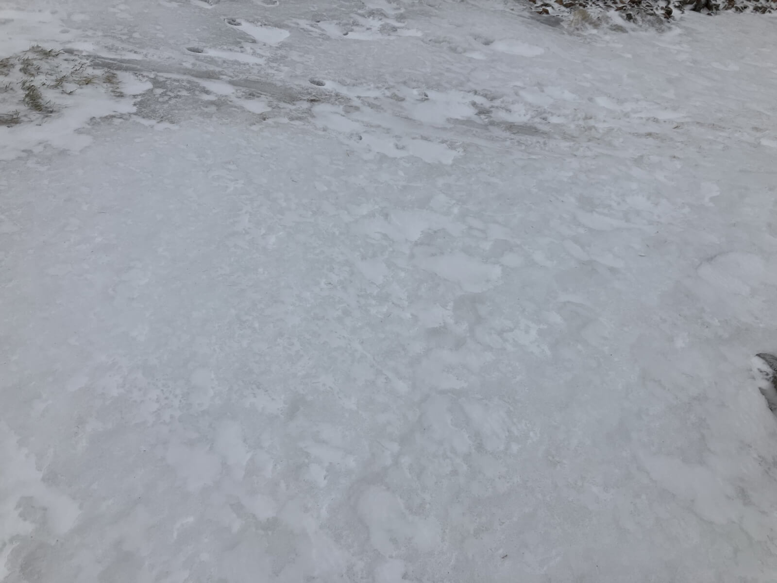 Last night the moist soft snowpack refroze and a dusting of new snow fell mainly above 800 metres. Cloudy above 900 metres today with fresh to strong Southerly winds. The freezing level was around 800 metres. Last nights new snow accumulations were not significant merely a dusting above 800 metres. The old moist snowpack refroze and is firm and icy in all locations and elevations. Largest continuous areas of snow remain on mainly North to East aspects above 900 metres, increasingly patchy below this level.
