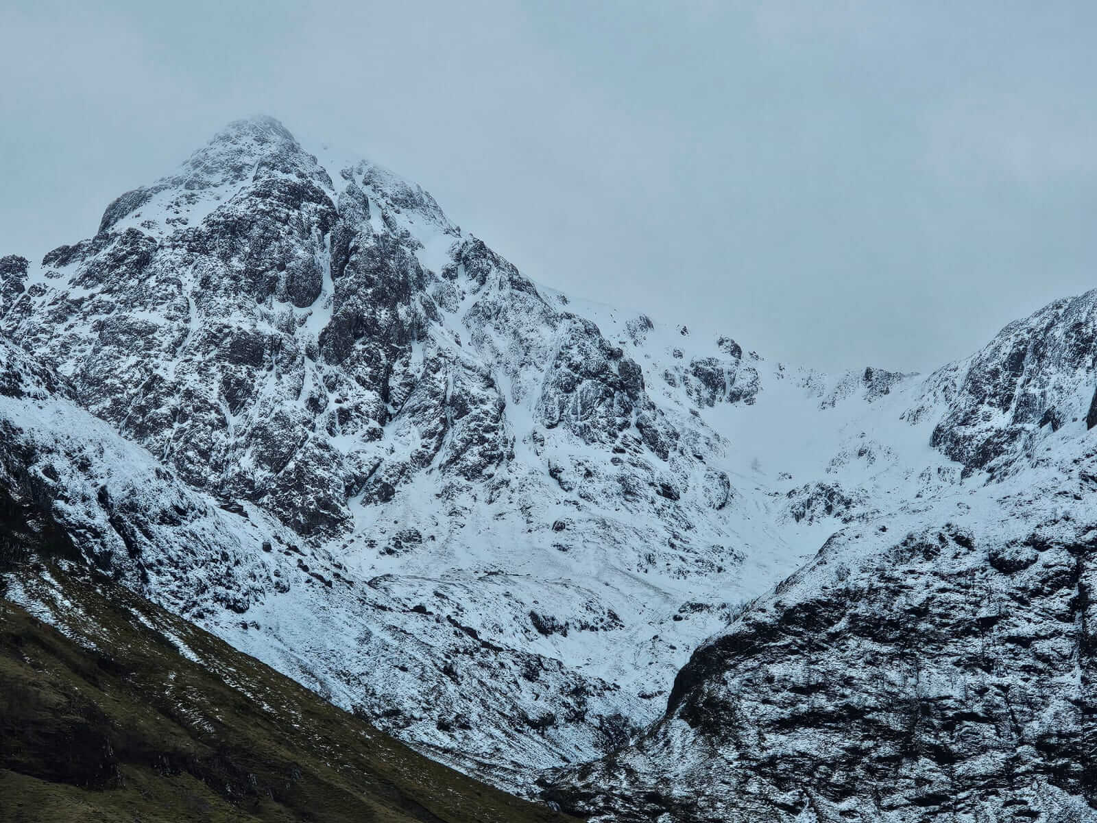 A bright start to the morning with summit views. Stob Coire nan Lochan (left) Stob Coire nam Beith (right).
