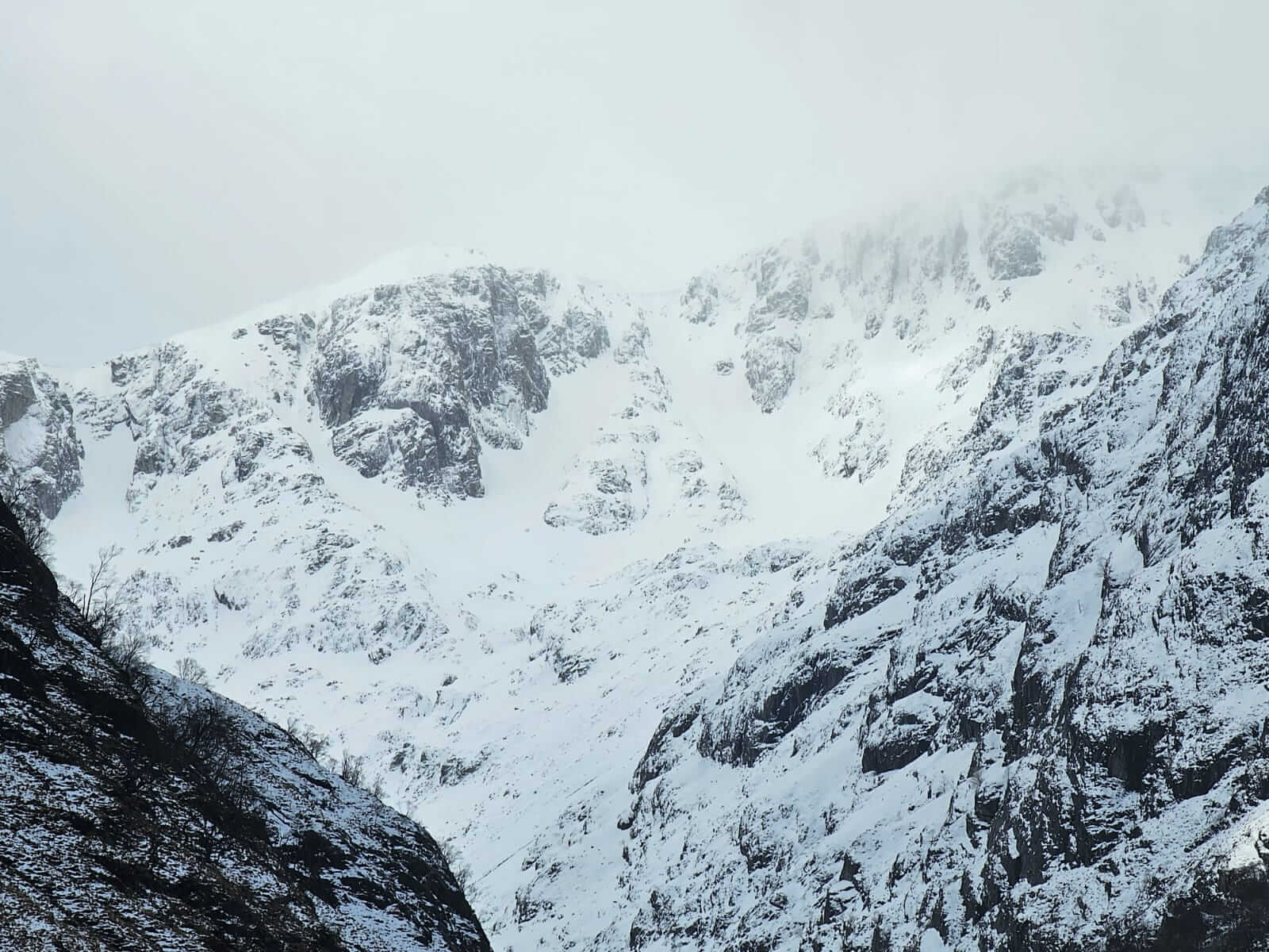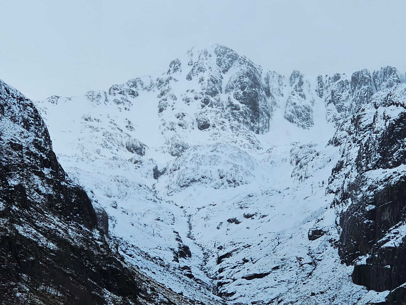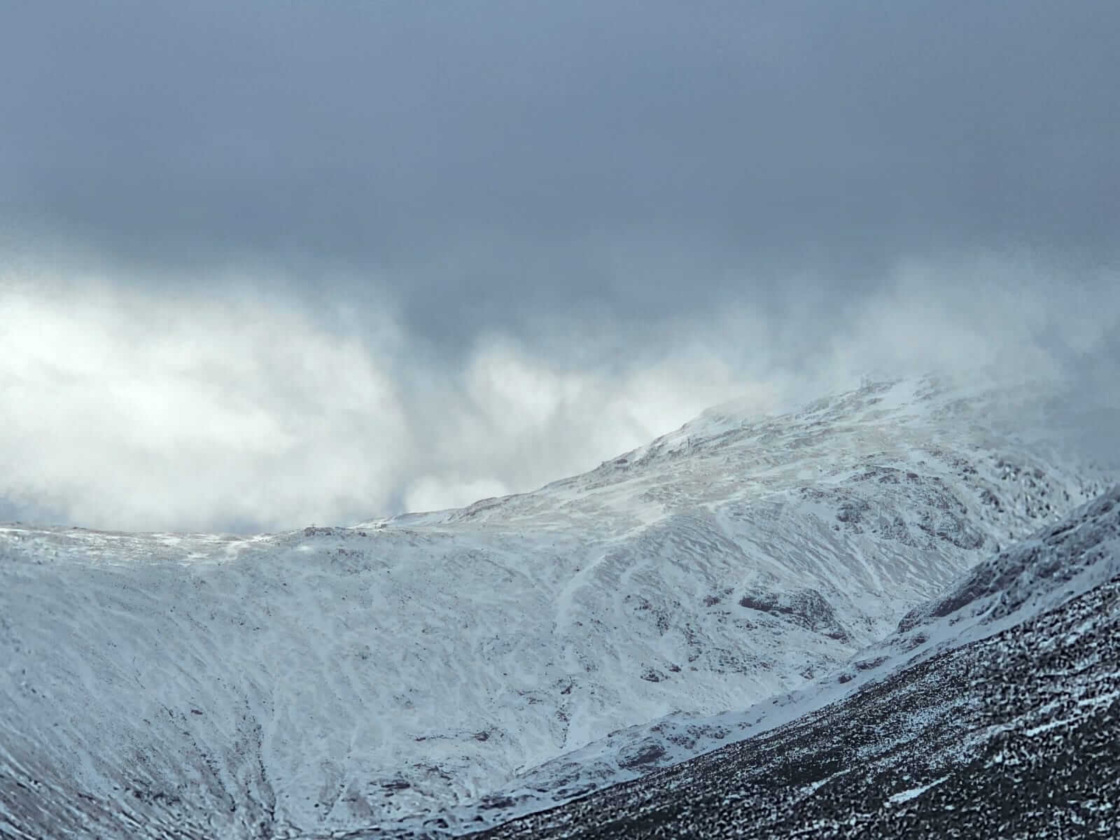 Some distinction can be seen between the old icy wind scoured snowpack and the fresh deposits in Coire na Tulaich.